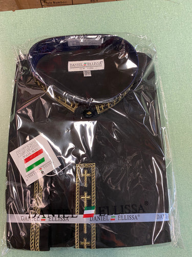 Daniel Ellissa Black with Gold Crosses Clergy Shirt 19.5 36/37