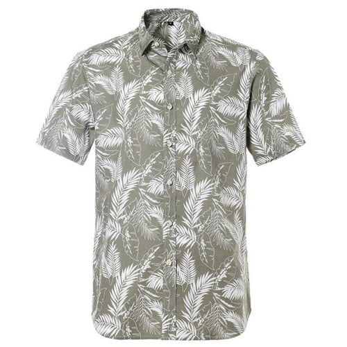 Khaki Palm Hawaiian Cotton Short Sleeve Shirt