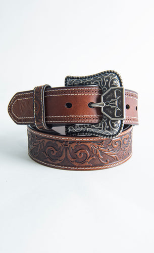 Mens Genuine Leather 3D Embossed Belt - Brown
