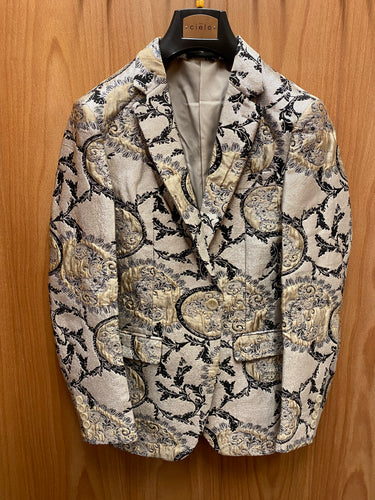 Studio Ferera White-Blue Multicolored Floral/Flower Print Slim Fit Blazer