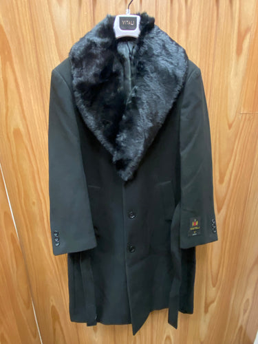 Vella Black V7010 Fur Collar Overcoat/Topcoat