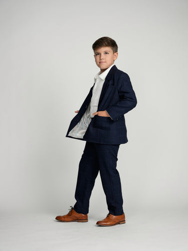 Navy Plaid Windowpane Dress Blazer