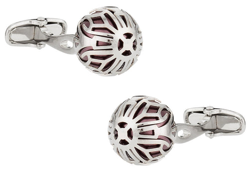 Swarovski Silver Caged Pearl Cufflinks in Burgundy