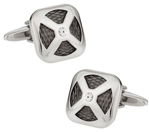 Men's Licensed Superman Shield Cufflinks in Black and White Enamel