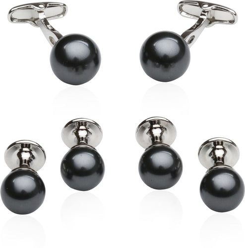 Black Swarovski Pearl Formal Set Cufflinks & Studs
