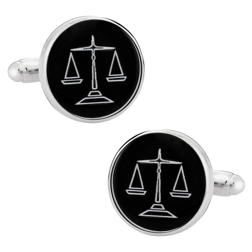 Attorney Lawyer Scales of Justice Silver Black Cufflinks