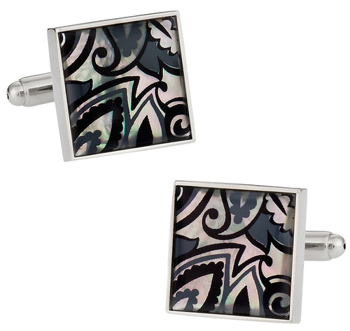 Genuine Mother of Pearl Black Gray Cufflinks