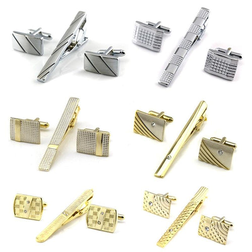 Elegant Gold Color Tie Clip And Cufflink Set For Men Classic Cufflinks Tie Clip Set Men Novelty Cuff Links Elegant Tie Bar Gifts For Wedding Classic Tie Clips Cufflinks Sets Unique Vintage Men Jewelry For Party