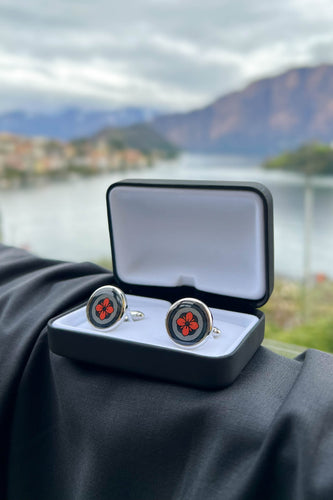 Lava Orange Floral Print Handmade Italian Cufflinks with Clear Resin