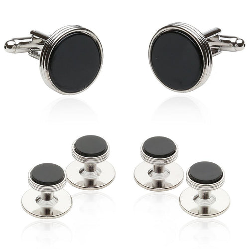 Onyx Silver Tuxedo Cufflinks & Studs for Men