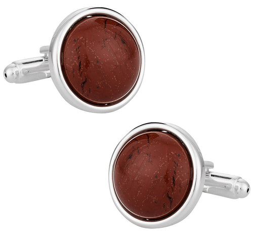Domed Jasper Cufflinks with Sterling Silver Plate
