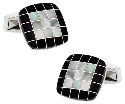 Black White Precious Grid Cufflinks