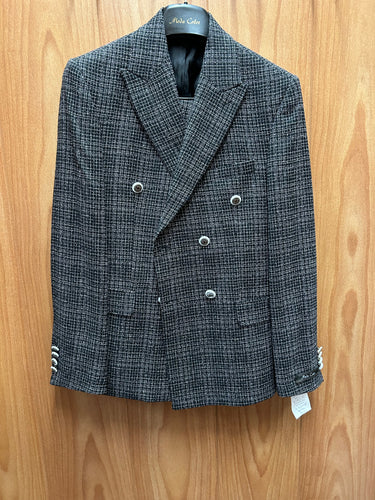Moda Color Black/White checkered Turkish Slim Fit Double Breasted Wool Suit