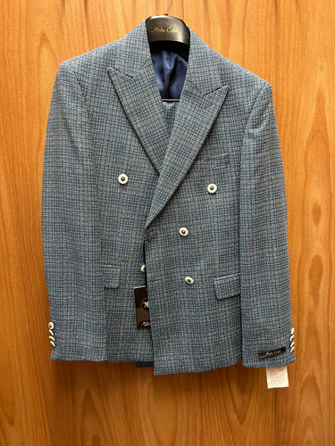 Moda Color Teal/White checkered Turkish Slim Fit Double Breasted Wool Suit