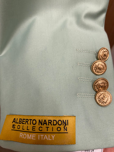 Alberto Nardoni Light Green Slim Fit European Double Breasted Suit with Gold Buttons