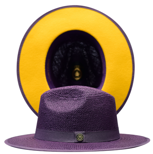 Bruno Capelo Kingdom Straw Fedora Flat Wide Brim Hat | KI21 Purple with Gold undertone