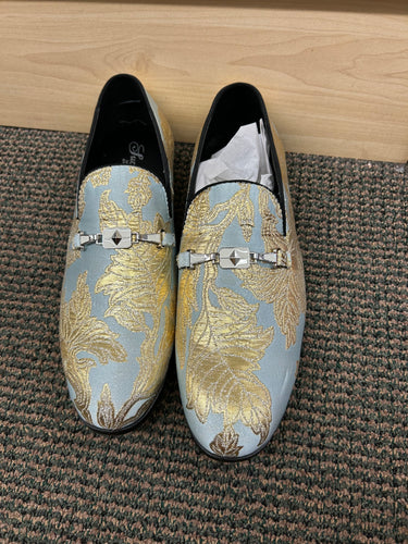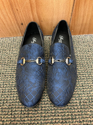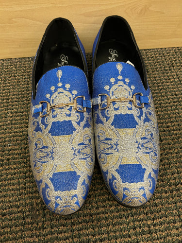 Successos Blue fancy print red bottom slip-on dress shoes sizes 7-15