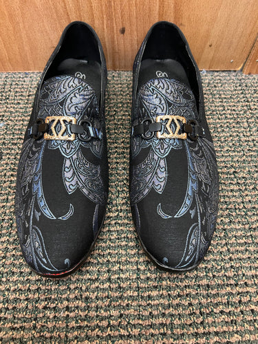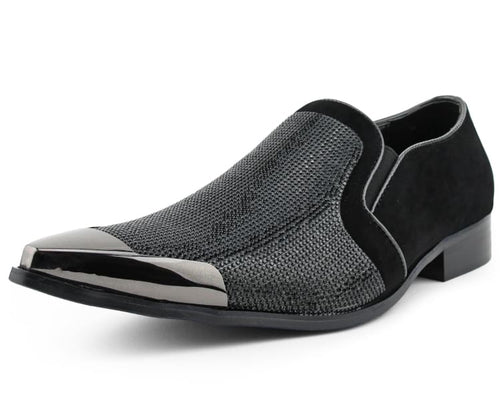Bolano Dezzy Rhinestone Encrusted Smoking Slip-on Tuxedo Men's Dress Shoes | Dezzy Black