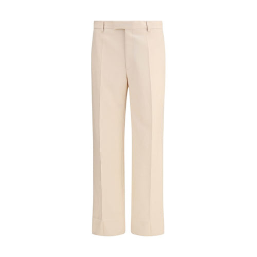 Dolce & Gabbana White Cotton Striped Formal Pants