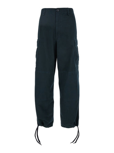 Balenciaga Men Blue Pants With Drawstring Waist And Cargo Pockets In Cotton Man