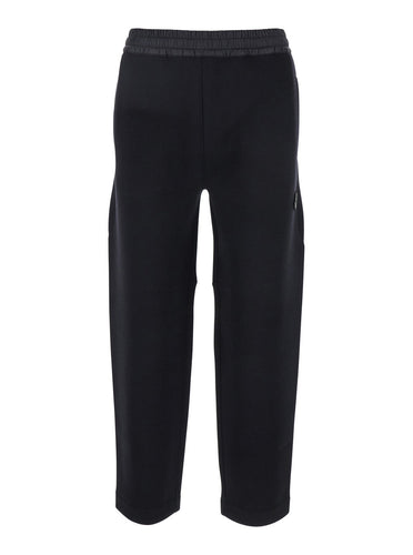 Moncler Men Black Pants With Insert Details And Logo Patch On The Front In Cotton And Tech Fabric Blend Man