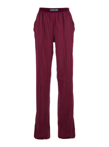 Tom Ford Women Fuchsia Pants With Elastic Waist With Logo Lettering In Silk Stretch Woman