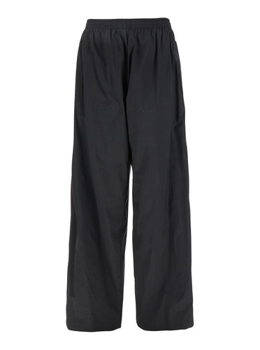 Balenciaga Men Black Pants With Elastic Drawstring And Side Band With Logo Lettering In Tech Fabric Man