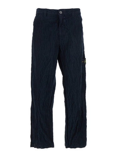 Stone Island Men Blue Corduroy Pants With Logo Patch On The Side In Cotton Blend Man