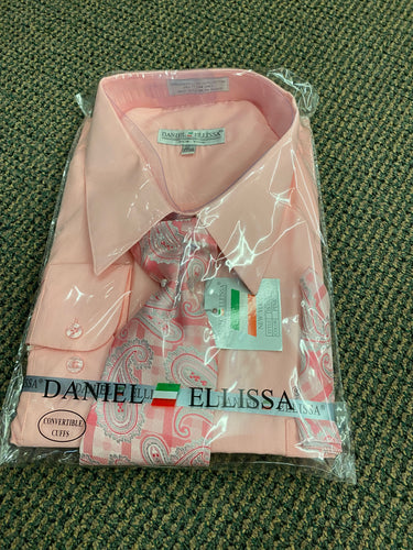Daniel Ellissa DS3001 Pink Convertible cuff Men’s Dress Shirt