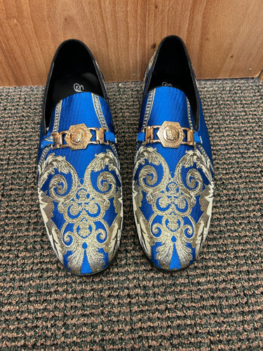 Successos Royal Blue/Gold Men’s Red Bottom Dress Shoes Sizes 7-15