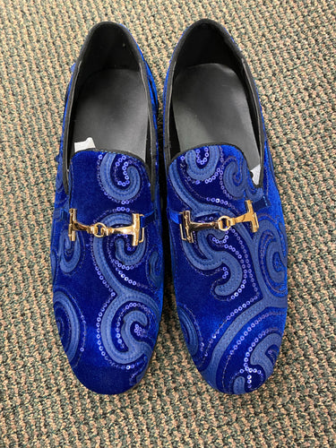 Successos Royal Blue Suede and Swirl Smoking Slippers/Mens Dress Shoes Sizes 8-15