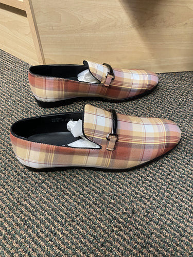 Successos Tan Plaid red bottom slip-on dress shoes sizes 7-15
