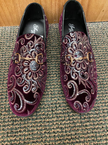 Successos Burgundy Sequins Men’s Red Bottom Dress Shoes Sizes 7-15