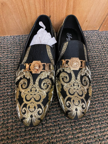 Successos Black fancy print red bottom slip-on dress shoes sizes 7-15