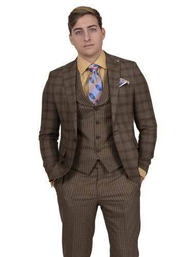 Steven Land | Elite Mixed Pattern 3 Piece Suit | Brown HERMESSL7764342L
