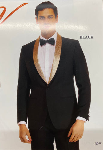 Vitali Slim Fit Tuxedo Black With Gold Collar G1929