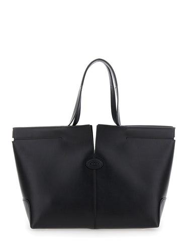 Tod's Women Black Tote Bag With Two Top Handles And Metal Details On The Side In Leather Woman