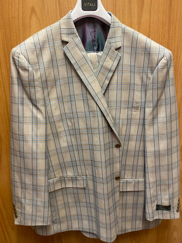 Vitali Beige Plaid 3-Piece Suit 58R M7115-1-NP