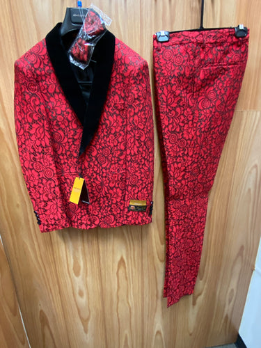 Alberto Nardoni Red/Black Lace Print 2-Piece Slim Fit Suit