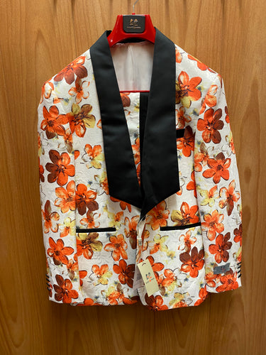 Kent & Park JP101 Orange Floral Print 2-Piece Suit