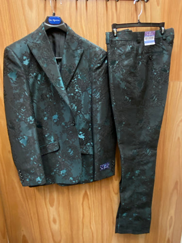 Blu Martini Shiny Green with Black Lace Overlay Slim Fit 2-Piece Prom Suit 9108-BEN 930