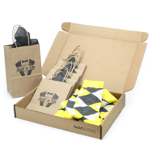 Customizable Groomsmen Gift Set Daisy Yellow Gray Argyle Men’s Dress Socks
