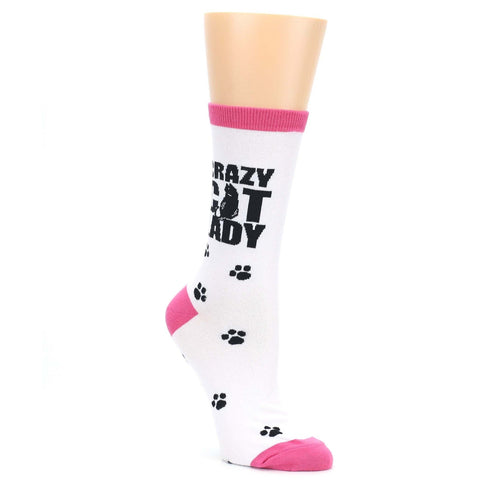 White Pink Crazy Cat Lady Socks - Women's Novelty Socks