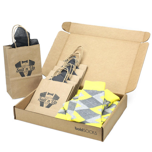 Customizable Groomsmen Gift Set Lemon Yellow Gray Argyle Men’s Dress Socks