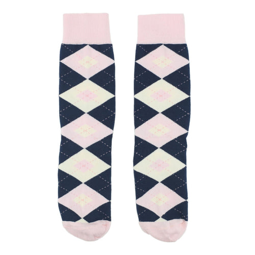 Blush Petal Navy Argyle Wedding Groomsmen Men's Dress Socks with Matching Necktie