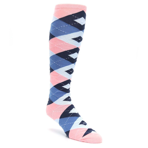 Pink Blue Navy Argyle Men's Over-the-Calf Dress Socks