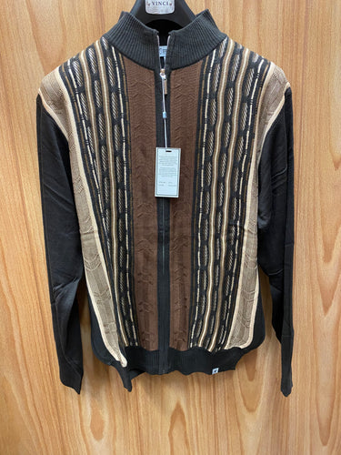 Stacy Adams 5316 Chocolate Geometric Print Sweater | Full Zip