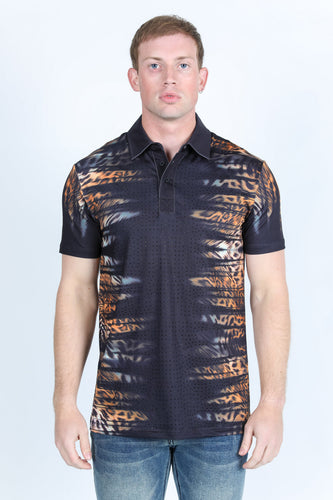 Mens Modern Fit Stretch Baroque Print Polo with Rhinestones
