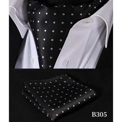 Black Polka Dot Silk Ascot/Cravat Tie & Handkerchief