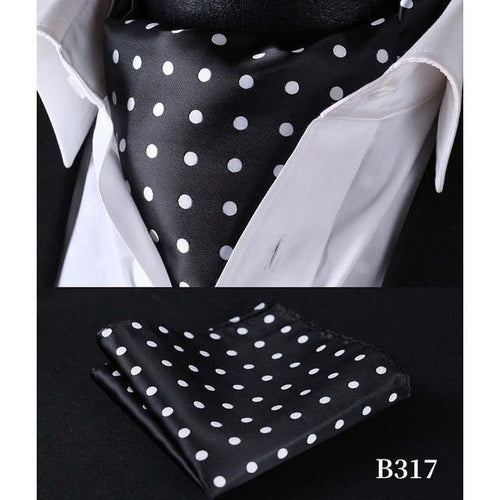 Charcoal Black Polka Dot Silk Ascot/Cravat Tie & Handkerchief